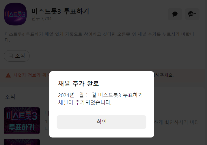 3. 카카오톡 채팅방에서 검색하거나 바로 '미스트롯 3 투표하기'방으로 입장하기