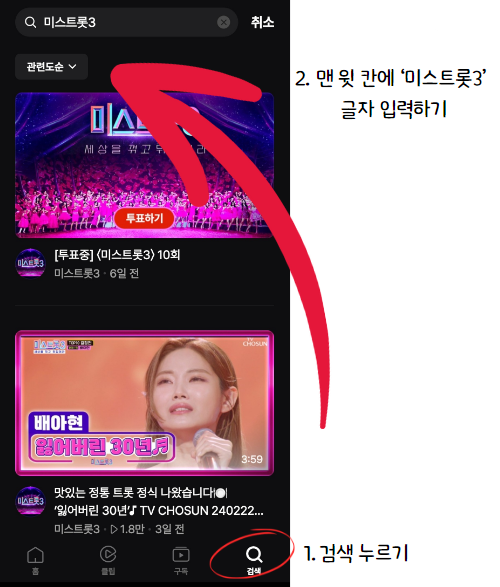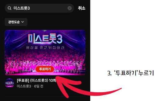 2️⃣ 맨 윗 칸에 '미스트롯 3'라고 입력하기