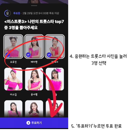 4️⃣ 응원하는 트롯스타 3명 선택하기